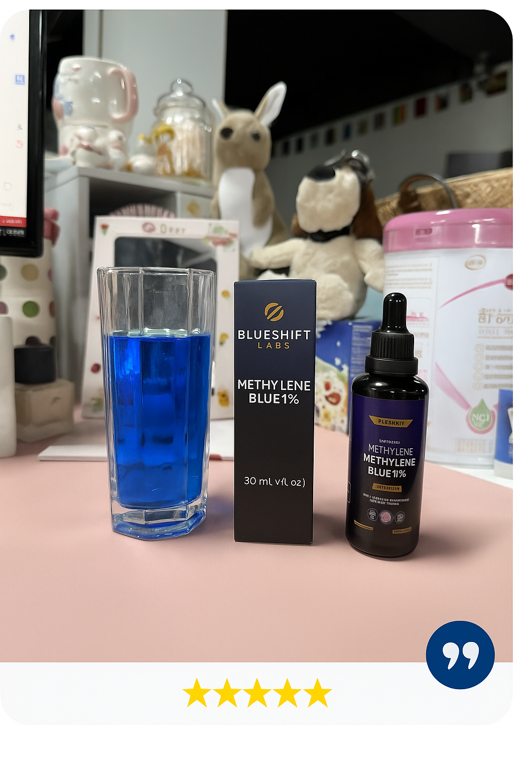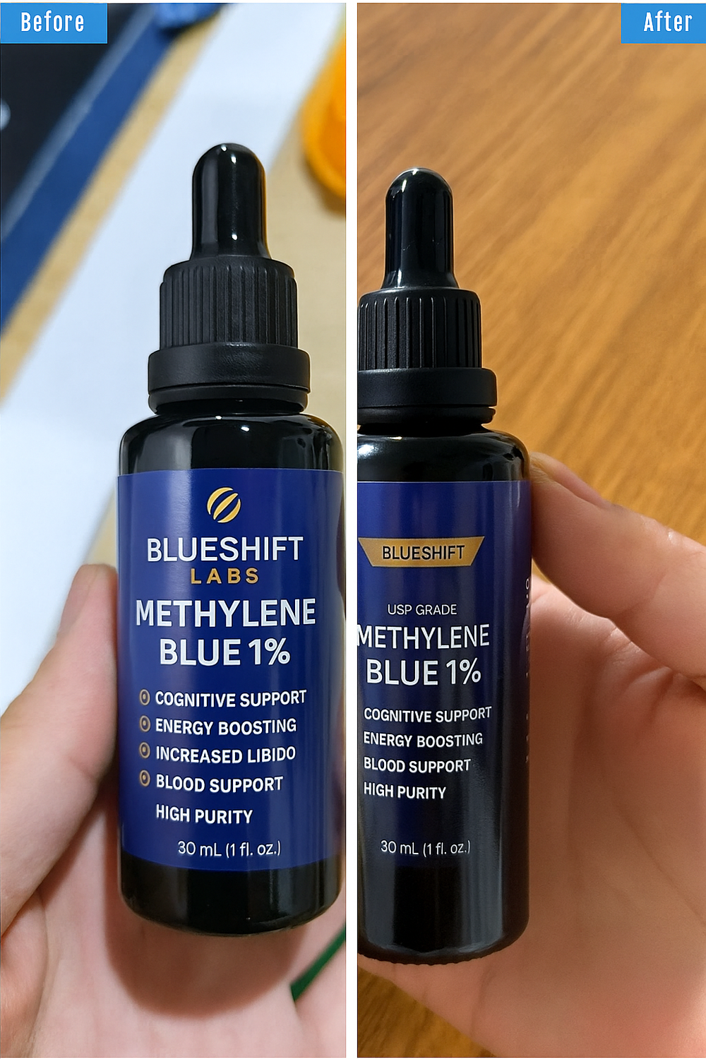 See the difference clearly—BlueShift’s authentic methylene blue ensures unmatched purity and effectiveness.